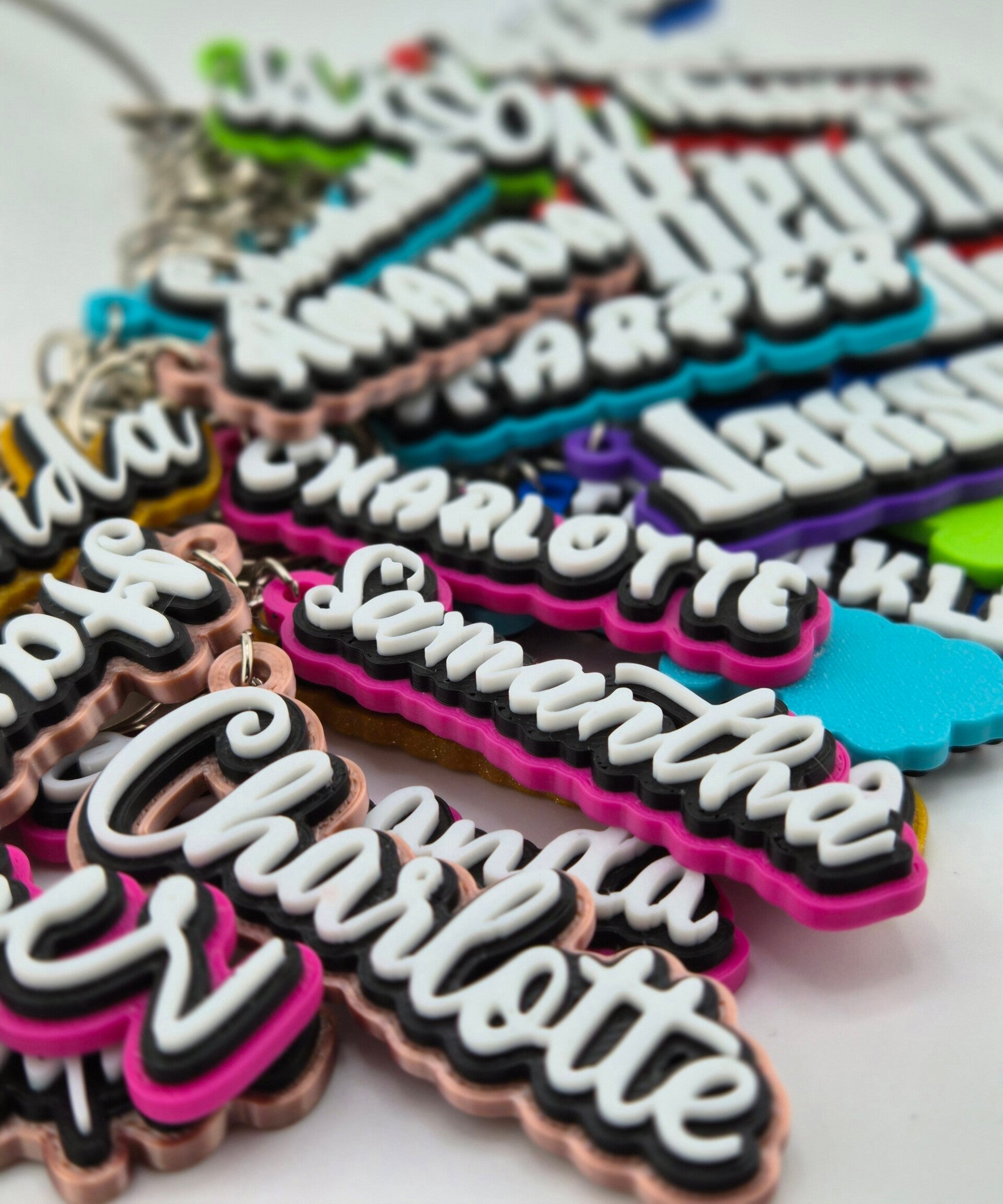 Our personalized name keychains are the perfect way to add a bold, custom touch to your keys, bags, backpacks, or even gift packaging. Each keychain is designed with a layered 3D look that makes the name pop — clean, vibrant, and built to stand out.
