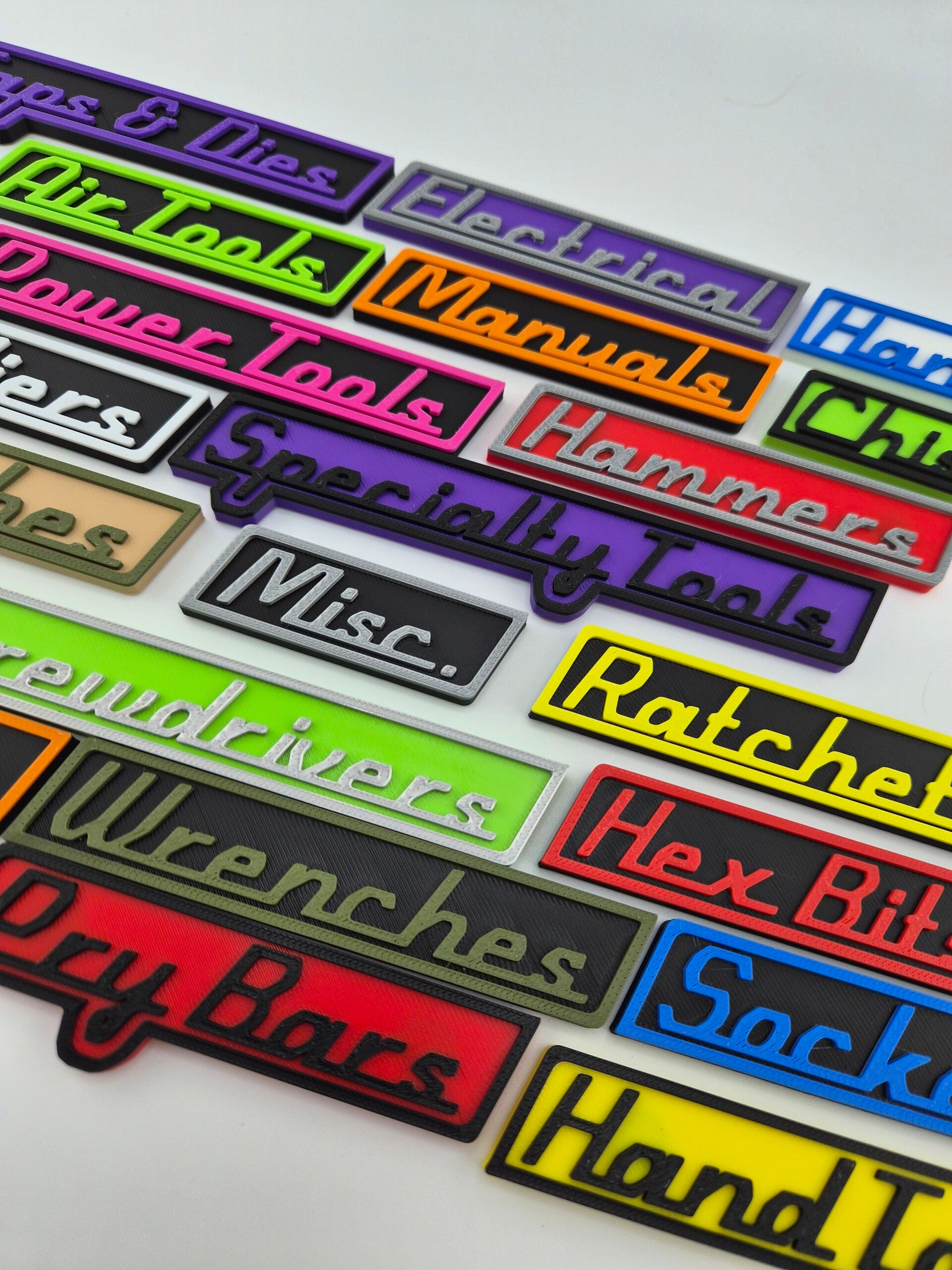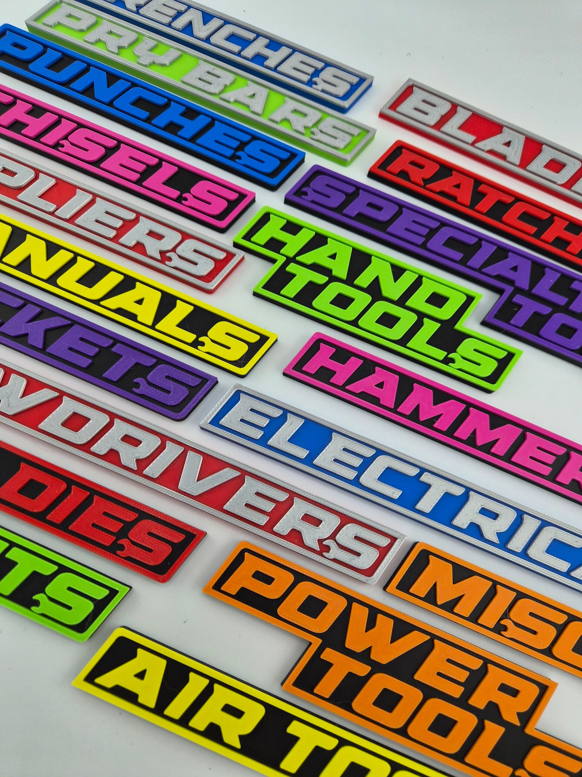 Designed for durability and style, these bold 3D labels make it simple to identify drawers at a glance. Whether you're organizing a home garage, professional shop, or work trailer, these magnetic labels snap securely onto metal surfaces and stay put — while still being easy to reposition whenever you need.